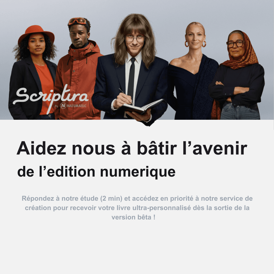 En communiquant votre email, vous acceptez que NATURATEC l'utilise pour vous envoyer votre accès Beta et des informations sur le service Scriptura. Vous disposez d'un droit d'accès et de suppression de vos données sur simple demande à solutions@naturatec.tech